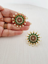 Adorn your ears with the captivating charm of these Polki-Style Floral Pearl Stud Earrings.