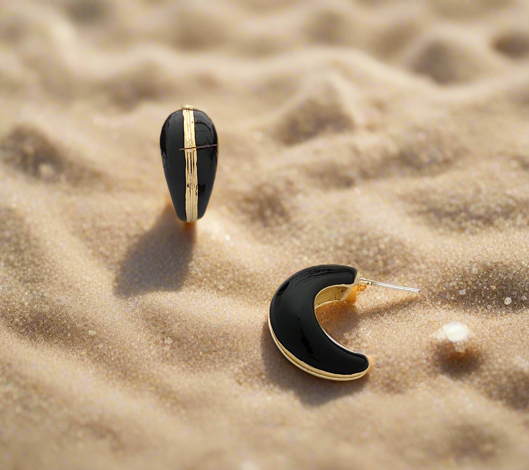 Embrace modern minimalism with these chic enamel hoop earrings. Featuring a sleek half-hoop design with a contrasting enamel inlay, these earrings offer contemporary and understated elegance. Their versatile style makes them perfect for adding a touch of sophisticated flair to both everyday wear and special occasions.